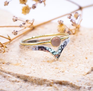 Chalcedoon ring gecombineerd met een gehamerde zilveren ring